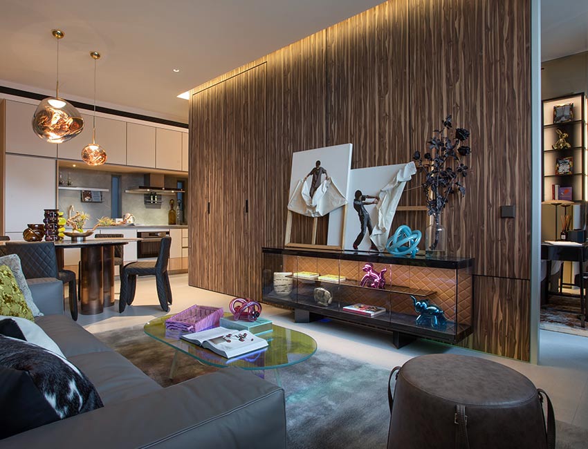 工业风格的室内设计以非传统、最高的精致方式诠释奢华享受。生活空间注重灵活的功能性;滑动式墙壁仿佛可以消失不见,为居民提供了无缝融合的奢华体验。
