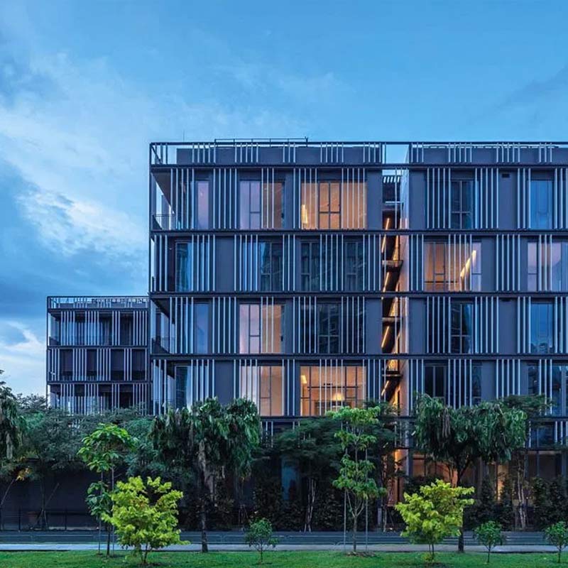 • 55套公寓位于一对低矮的5层公寓楼中间